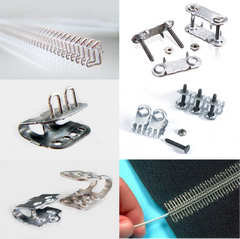 Plate fasteners (long life, low cost, easy installation with tooling, great for medium to heavy duty conveying)